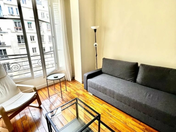 Le logement dispose d’une entrée, un cuisine aménagée et équipée, un très grand séjour donnant sur cour, une petite chambre, une salle d’eau avec WC et une cave.