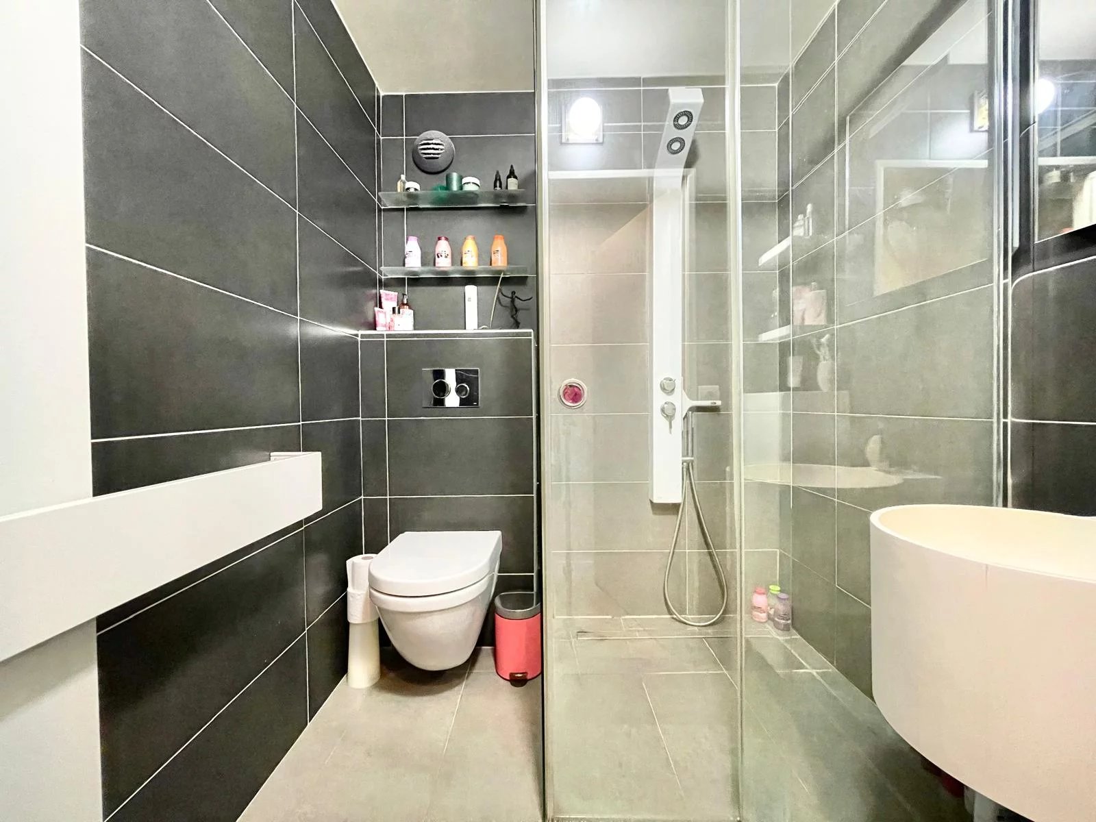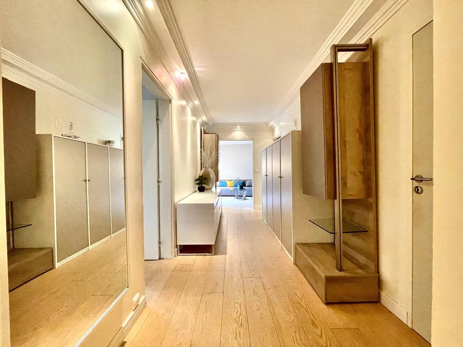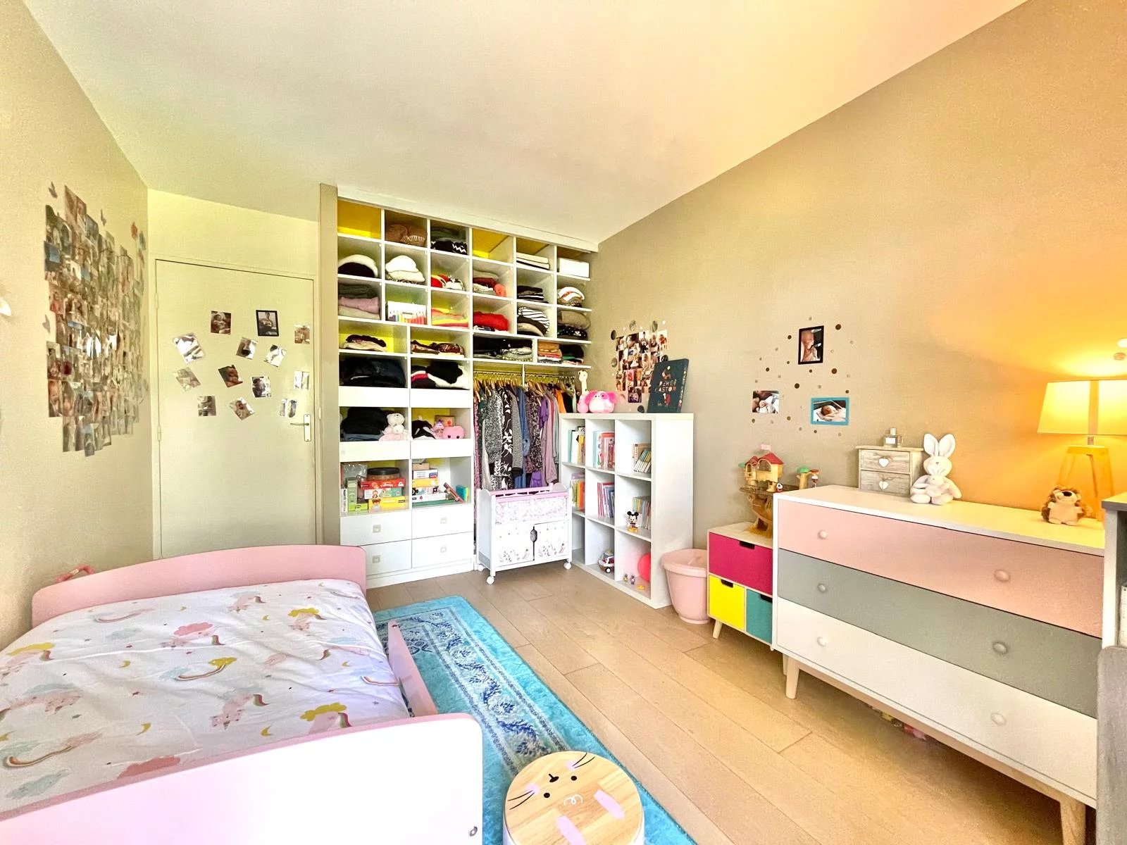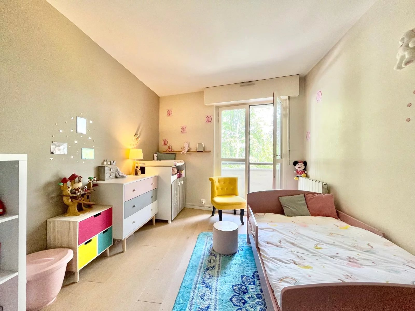 Il se compose : d’une belle entrée, d’une salle de douche avec vasque, sèche serviette et wc, d’une chambre avec penderie et balcon, d’une cuisine indépendante entièrement équipée avec espace repas, d’un salon/salle à manger traversant avec un grand balcon, 2 chambres avec vue sur Parc sans vis-à-vis, d’une chambre/bureau, d’une salle de bains avec double vasques, wc indépendants et une cave.