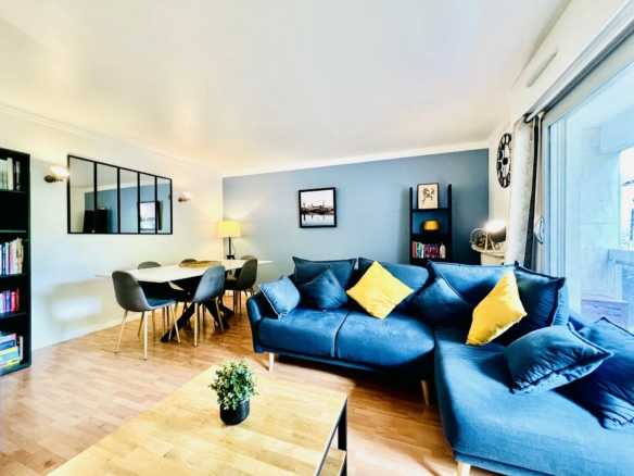 T3 Meublé 63 m² – 1er étage avec ascenseur – 3 balcons – Parking en sous-sol – Petite copropriété calme – Courbevoie – Proche rue de Bezons