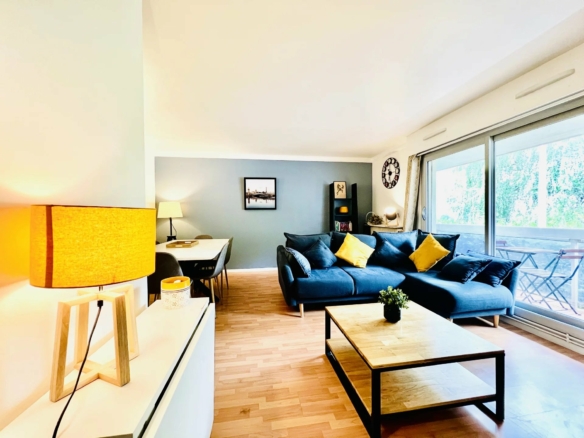 T3 Meublé 63 m² – 1er étage avec ascenseur – 3 balcons – Parking en sous-sol – Petite copropriété calme – Courbevoie