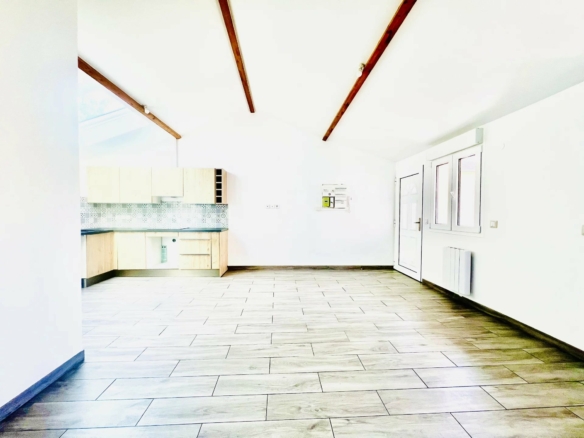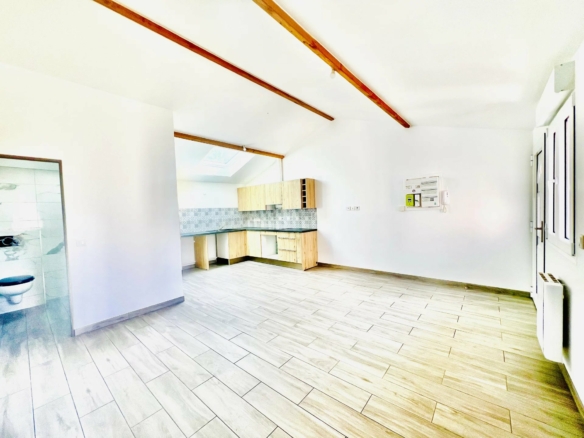 Il dispose d’un grand séjour, avec une cuisine entièrement aménagée, une salle d’eau avec WC suspendu, deux chambres.