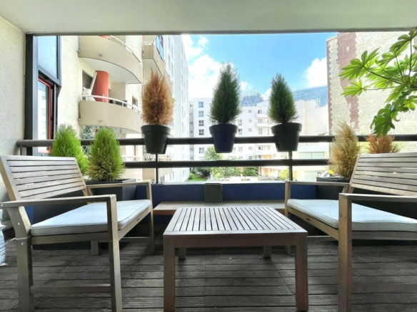 T3 Meublé 63 m² – 1er étage avec ascenseur – 3 balcons – Parking en sous-sol – Petite copropriété calme – Courbevoie